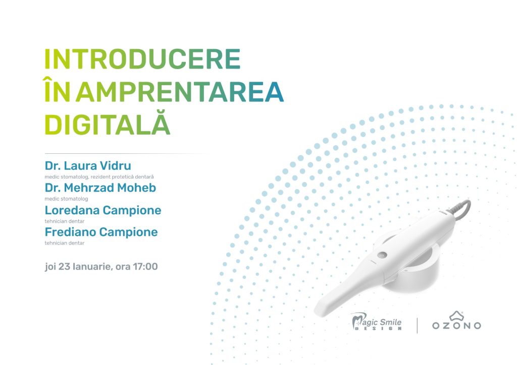 Metodele digitale reprezintă un pas mare înainte și care ne face pe toți să spuneți că „viitorul sună bine”, întrucât ne oferă o serie impresionantă de avantaje în comparație cu metodele clasice. Pornind de la această premisă, s-a născut ideea echipei OZONO de a organiza un curs despre amprentarea digitală, pentru ca toți cei care își doresc să fie la curent cu toate noutățile din lumea medicală să aibă posibilitatea de a învăța în permanență cum pot fi mai buni în ceea ce fac, însușindu-și noi și noi cunoștințe.